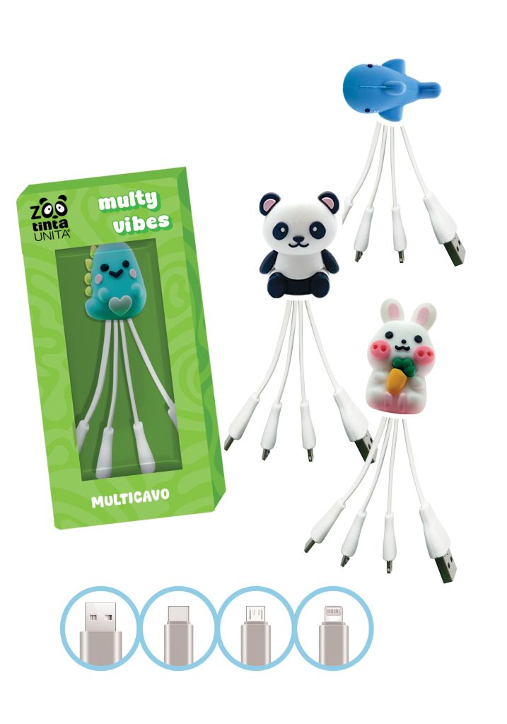 Cavo di ricarica multiplo della linea Zoo di Tinta Unita, permette di ricaricare fino a 3 dispositivi contemporaneamente.Compatto e pratico, perfetto da tenere in borsa o nello zaino.