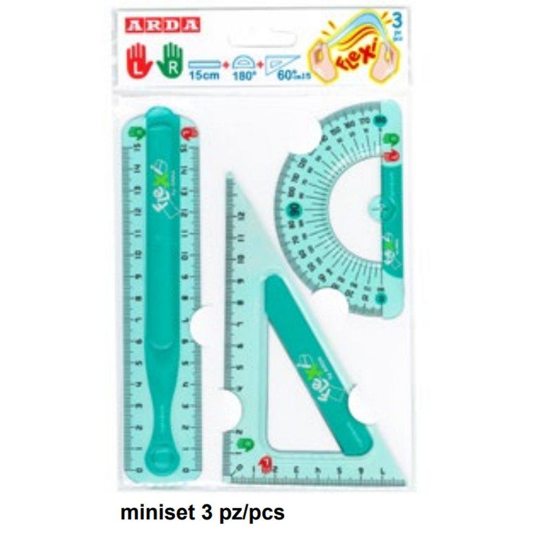 Kit accessori scuola per astuccio composto da Righello, Squadra e Goniometro.