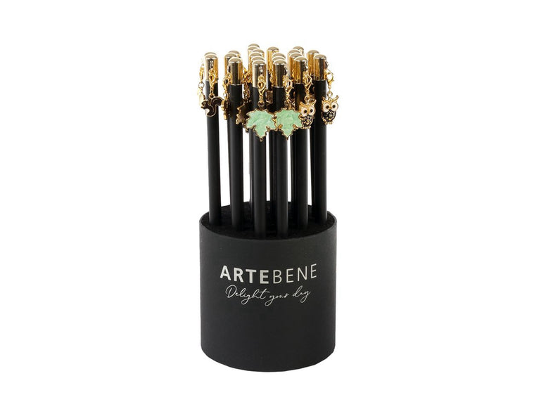 Un tocco di originalità per ogni giorno: queste matite nere sono decorate con un elegante ciondolo in metallo (gufetto o foglia), che si può anche staccare e riutilizzare come piccolo accessorio. Il modello verrà inviato in base alla disponibilità.