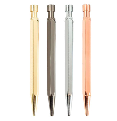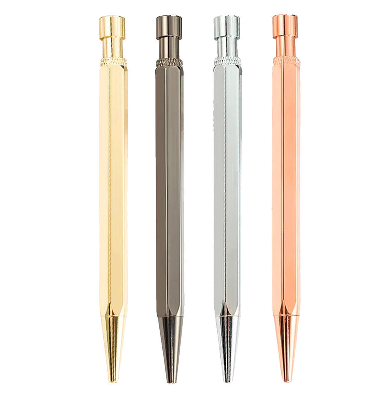 Penna a sfera con forma esagonale con inchiostro nero, ricaricabile. Scorrevole e con tratto morbido è perfetta per scrivere appunti in velocità! Colore casuale in base alla disponibilità