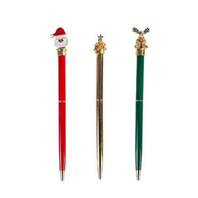 Penna con fantasia natalizia realizzate in metallo lucido.