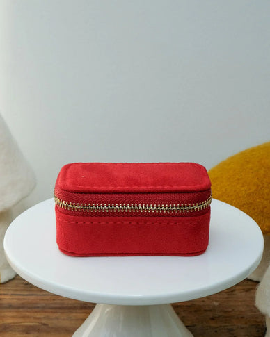 Il mini portagioie da viaggio Marie è l’alleato perfetto per custodire i tuoi gioielli essenziali ovunque tu vada. Realizzato in velluto ultra morbido, sia all’interno che all’esterno, unisce eleganza e praticità in un formato compatto. La zip dorata incisa Maison Scarlett e il logo in rilievo all’interno aggiungono un tocco di raffinatezza.