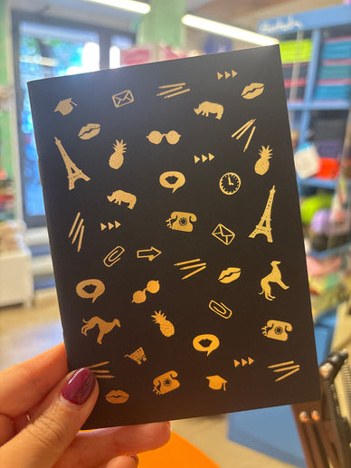 Compatto e raffinato, questo quadernino formato A6 ha copertina rigida decorata con scritte o disegni dorati/argentati che lo rendono elegante e moderno. Le pagine puntinate sono perfette per appunti, schizzi, bullet journal o progetti creativi. Un accessorio pratico da portare sempre con sé o da regalare.