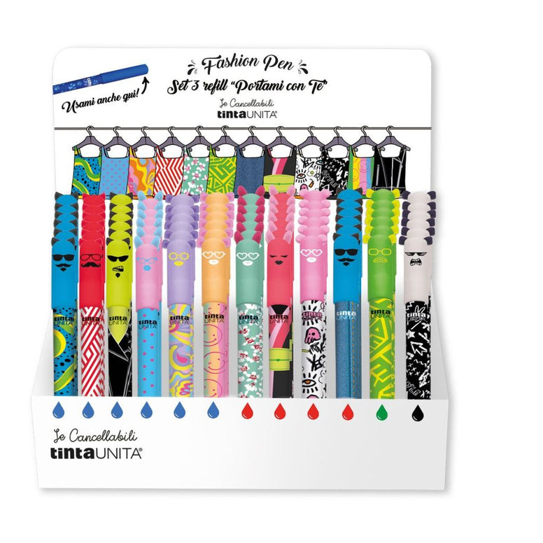 Confezione da 3 ricariche Tinta Unita per penne cancellabili, disponibili nei colori blu, nero, rosso e verde. Perfette per non rimanere mai senza la tua penna preferita, si inseriscono facilmente e ti permettono di scrivere, cancellare e riscrivere tutte le volte che vuoi. La fantasia del contenitore è casuale, così ogni volta sarà una sorpresa divertente!