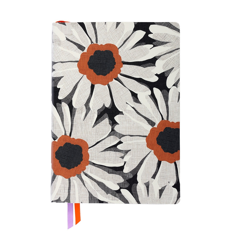 Questo quaderno porta un tocco raffinato sulla scrivania con il suo disegno floreale crema su sfondo nero.