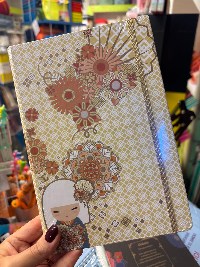 Notebook Kimmidoll con copertina rigida patinata, 160 pagine color avorio, segnalibro a fettuccia e banda elastica piatta. Ispirato alla filosofia Kimmidoll, rappresenta i valori positivi della vita e unisce eleganza e cultura orientale. Un’idea regalo raffinata per chi ama scrivere, riflettere o donare un pensiero portafortuna.