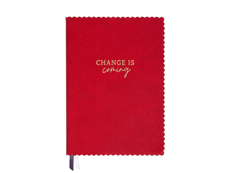 In un rosso brillante, la copertina vegana effetto pelle con bordo oro e la scritta sempre dorata “Change is coming” trasmettono eleganza e ispirazione.