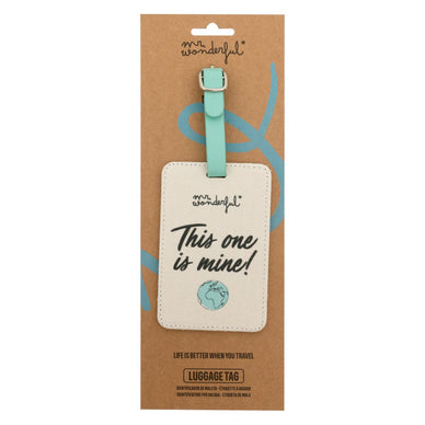 Questa targhetta da valigia firmata Mr. Wonderful è pratica e super riconoscibile, con la scritta "This one is mine!" e un piccolo mappamondo.Disponibile in rosa o azzurro, ha una chiusura con cinturino regolabile e uno spazio sul retro per scrivere i tuoi dati.