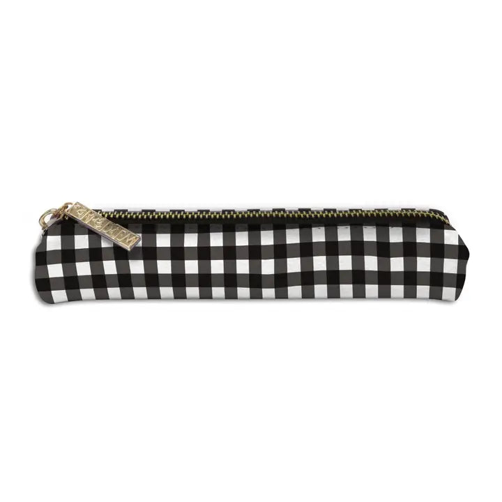 Compatto e pratico, questo astuccio in ecopelle è perfetto per tenere penne e matite sempre in ordine, anche fuori casa. Il design a scacchi nero e bianchi è grazioso e super chic. Chiusura con zip dorata, misura solo 2 x 7,9 pollici: entra comodamente in borsa.